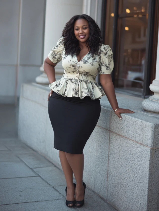 5. Peplum Blouse + Pencil Skirt