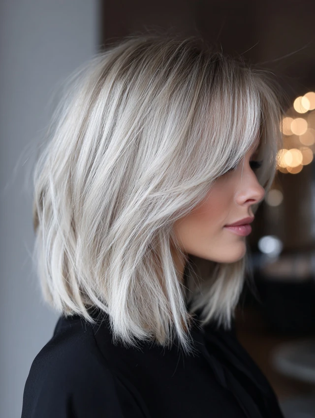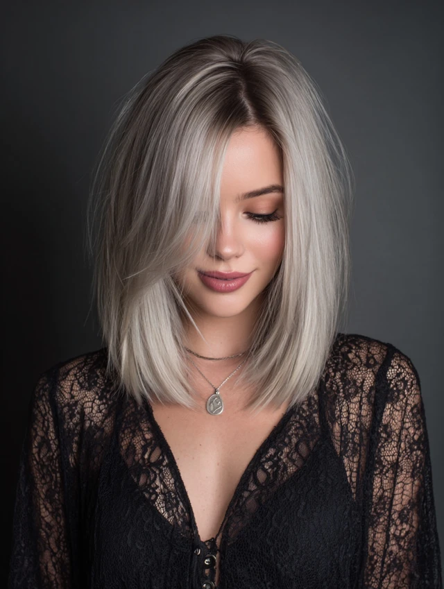 Why It Works: Modern and edgy, ash tones add sophistication to the sleek lob cut.