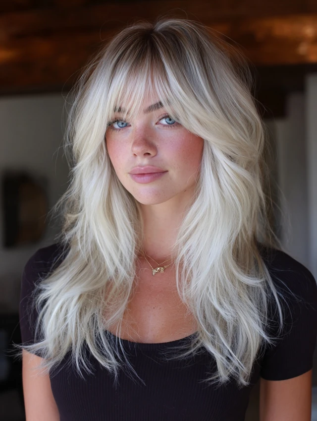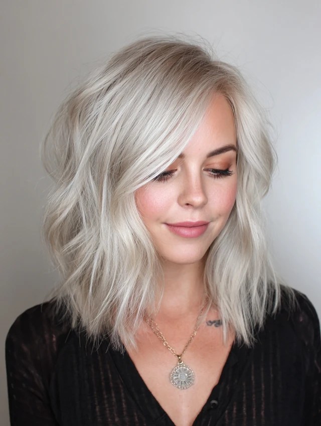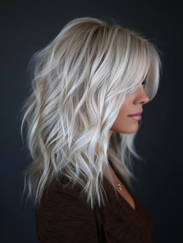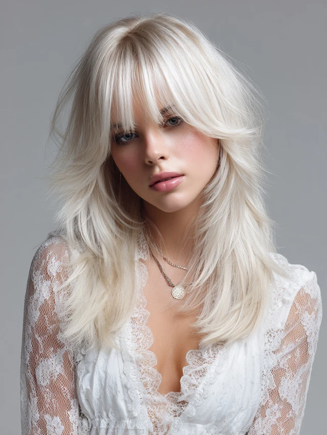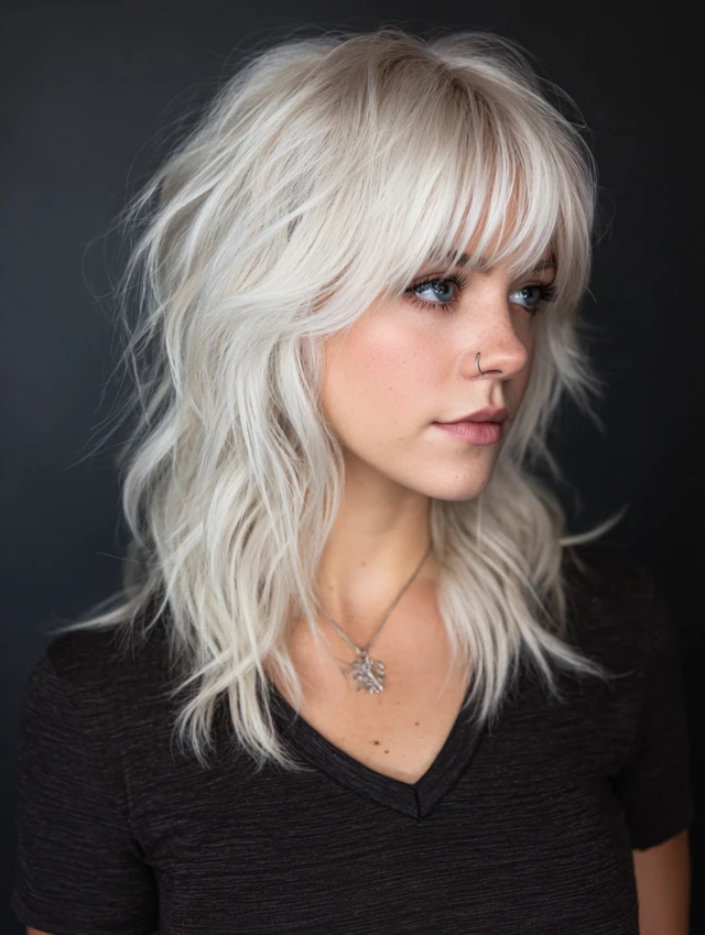 Why It Works: A shag cut paired with icy tones is edgy yet playful, perfect for women who love a bold vibe.