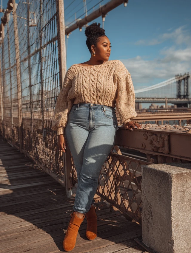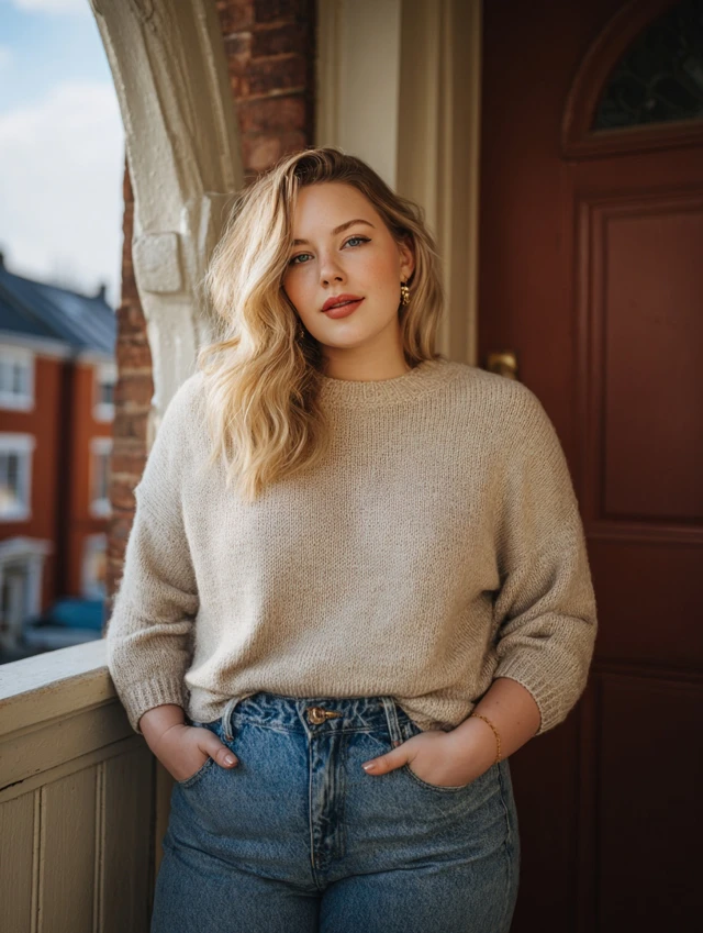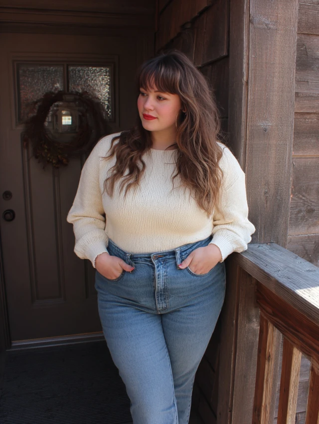 Why It Works: Jeans are a staple, and when paired with a fitted knit, the look feels clean yet casual.