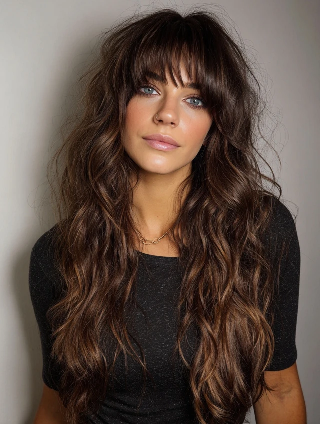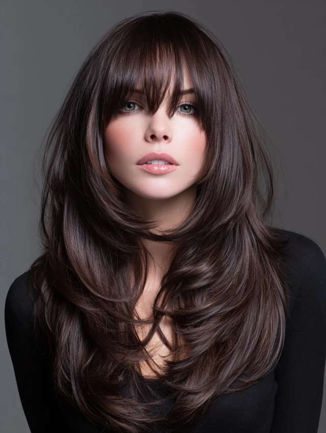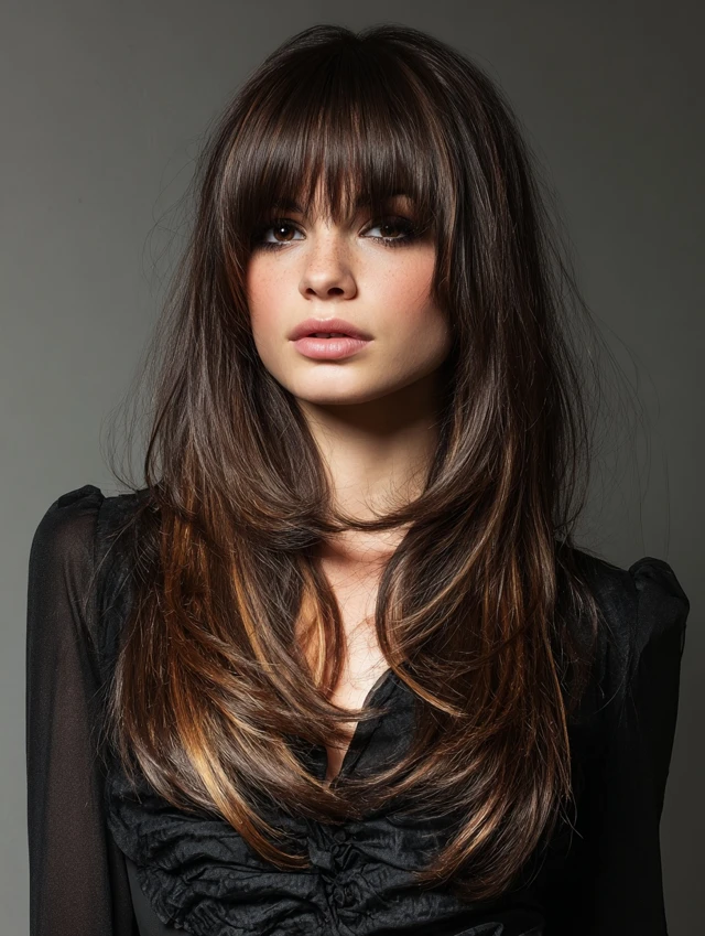 Why It Works: Blends edge and elegance. Long bangs integrate seamlessly into front layers for a cohesive, balanced effect.
