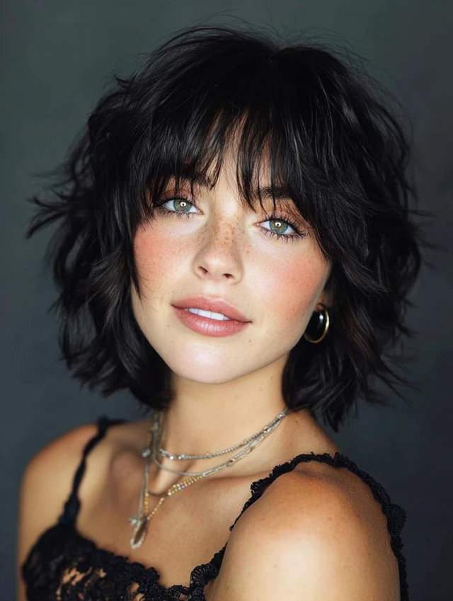 Why It Works: Soft, face-framing bangs balance the edgy layers, creating an effortlessly cool vibe.