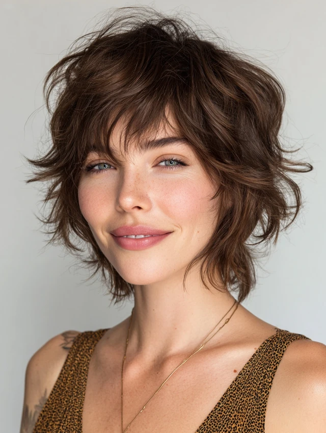 Why It Works: Combines the edge of a pixie with the texture of a shag—short, layered, and full of attitude.