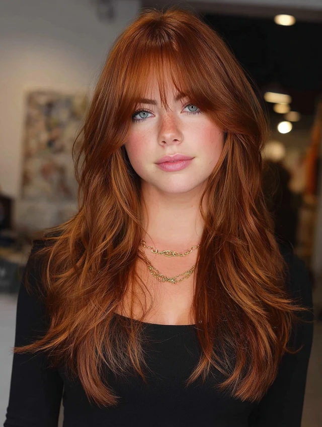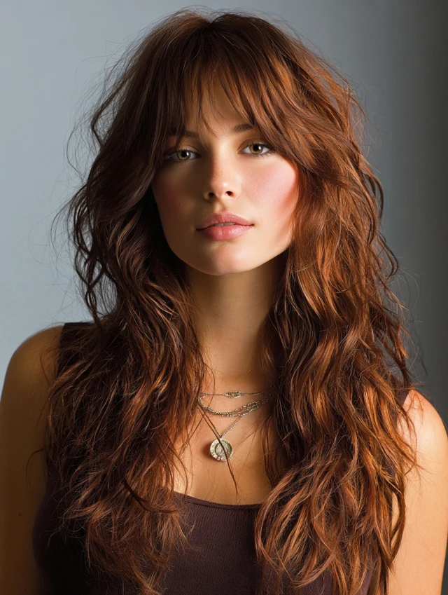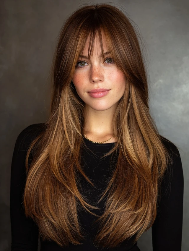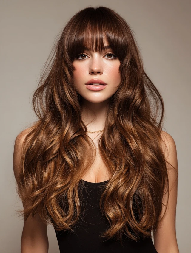 Why It Works: The soft, face-framing layers of curtain bangs add volume and movement around the face, enhancing dimension.