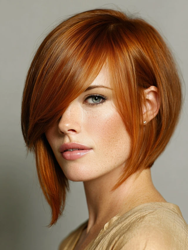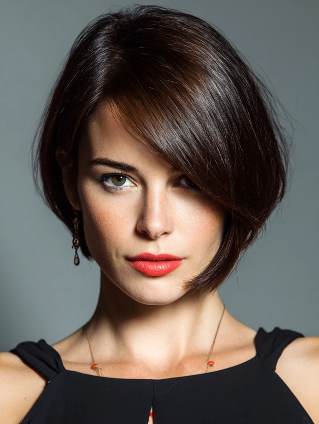This hairstyle flatters nearly every face shape because it blends precision with movement. The side bangs draw attention to your eyes and cheekbones while softening your overall look.