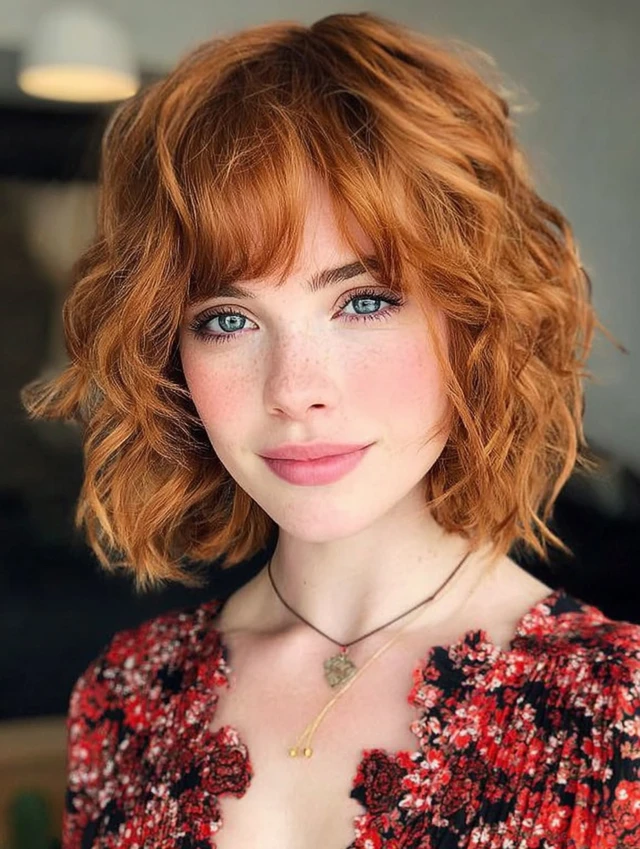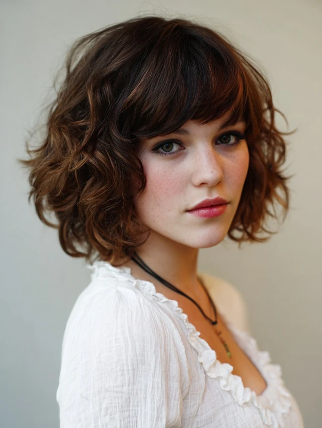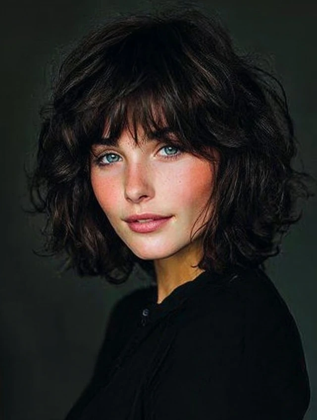 Why It Works: The curls add bounce and energy, while the bangs create balance and keep the look cohesive.