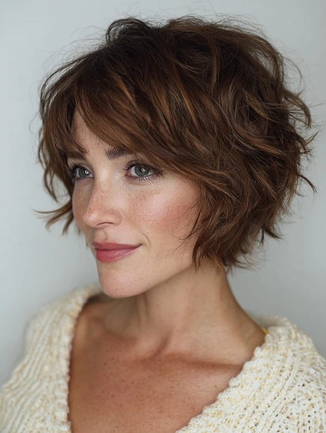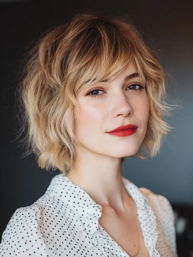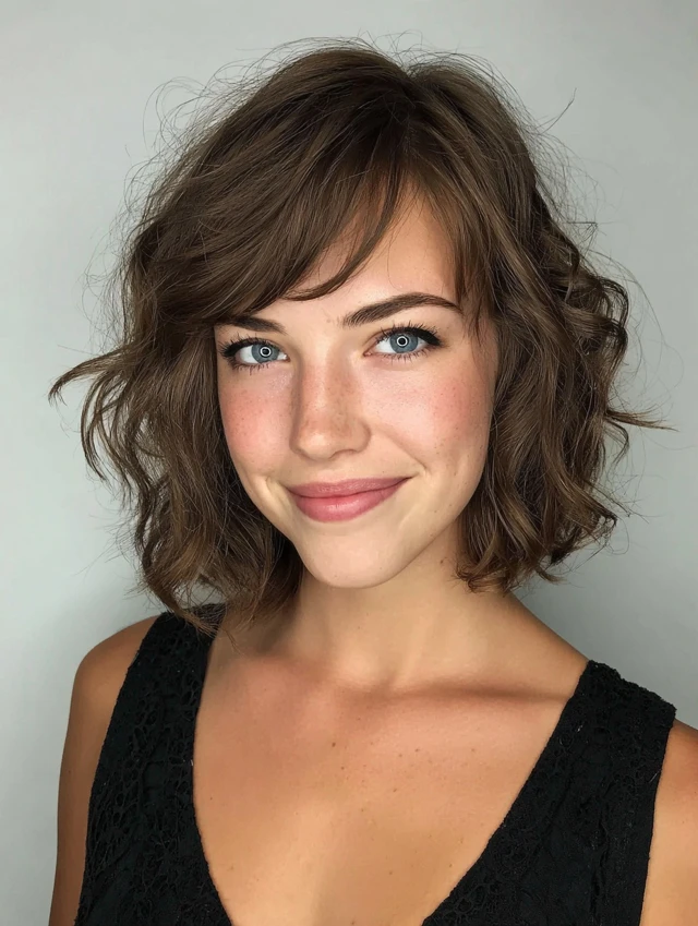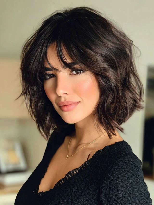 2. Textured Wavy Bob with Side Bangs
