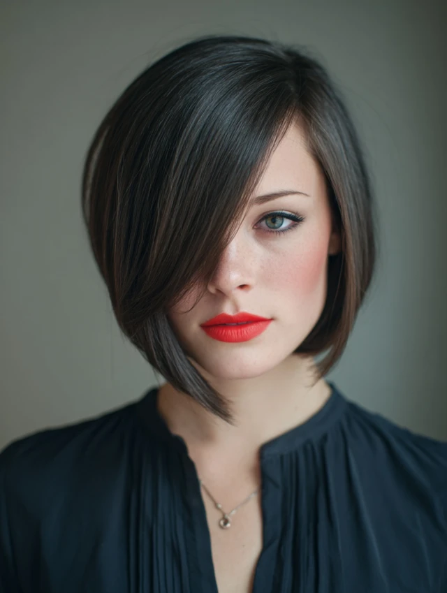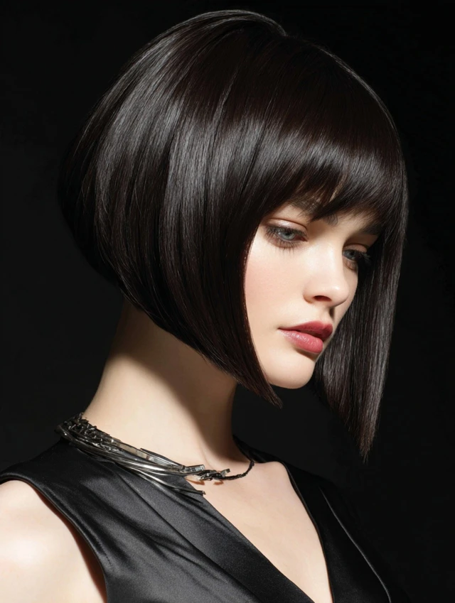 1. Sleek Angled Bob with Side Bangs