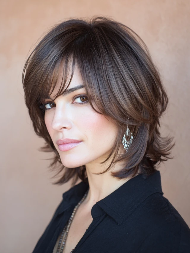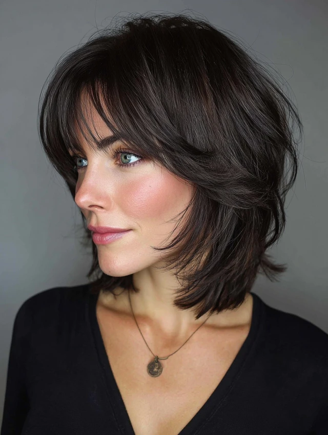 If you love hairstyles that combine timeless structure with a touch of movement, the medium bob with side bangs is your match. It’s flattering, feminine, and versatile—perfect for women who want to look polished without too much effort.