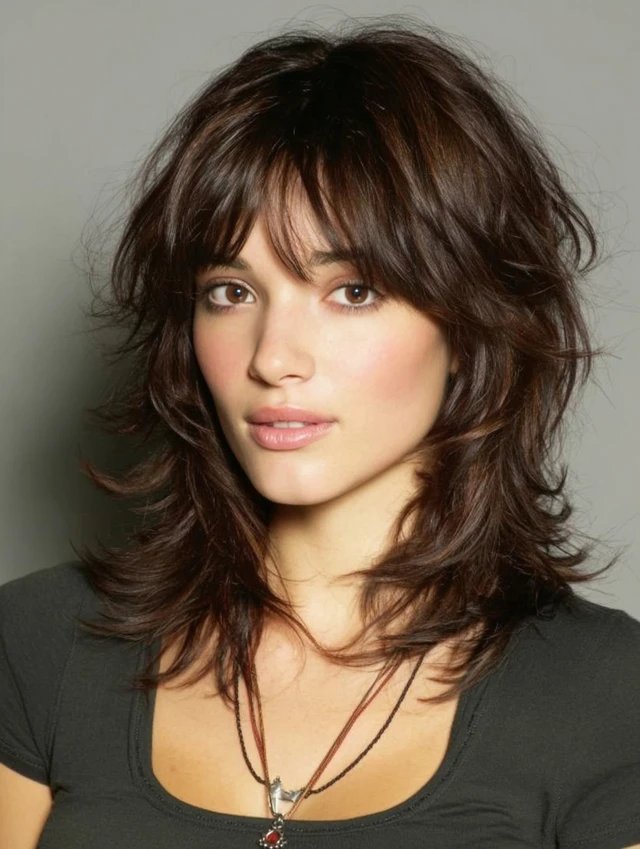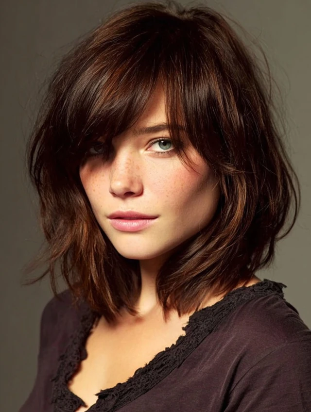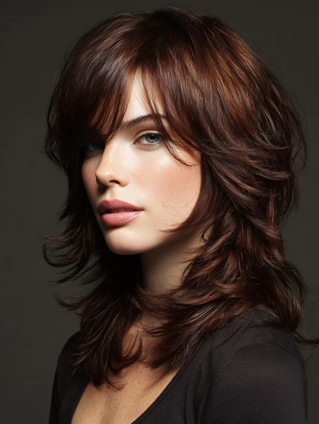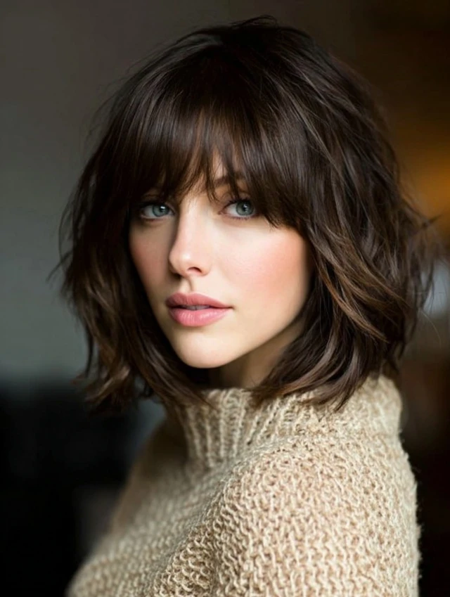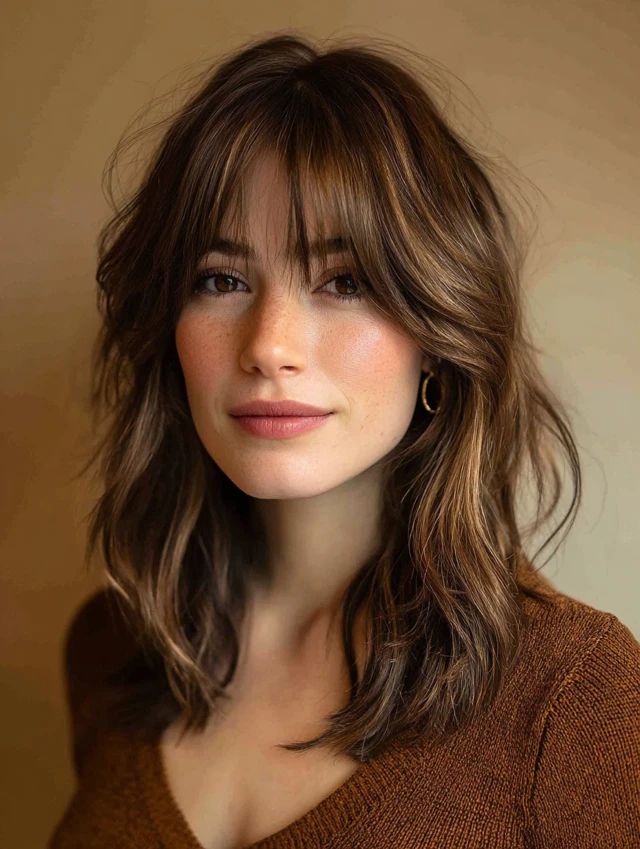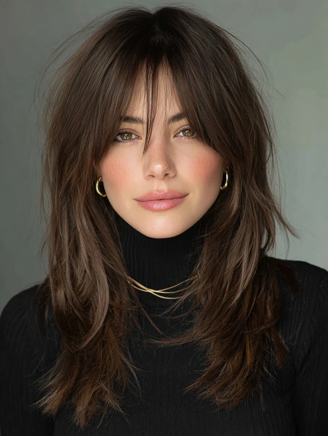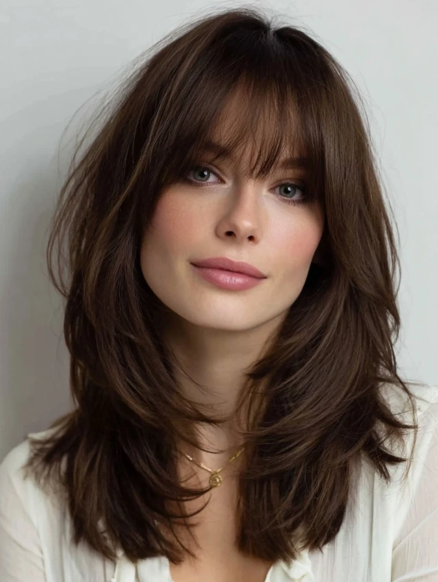 Why It Works: The layers add body, and the curtain bangs open up the face — creating that perfect balance between structure and softness.