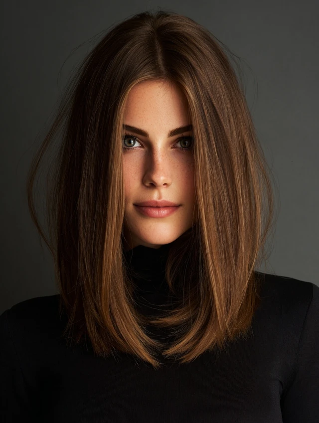 Why It Works: A polished lob elongates the face slightly while highlighting the cheekbones and jawline — perfect for oval symmetry.