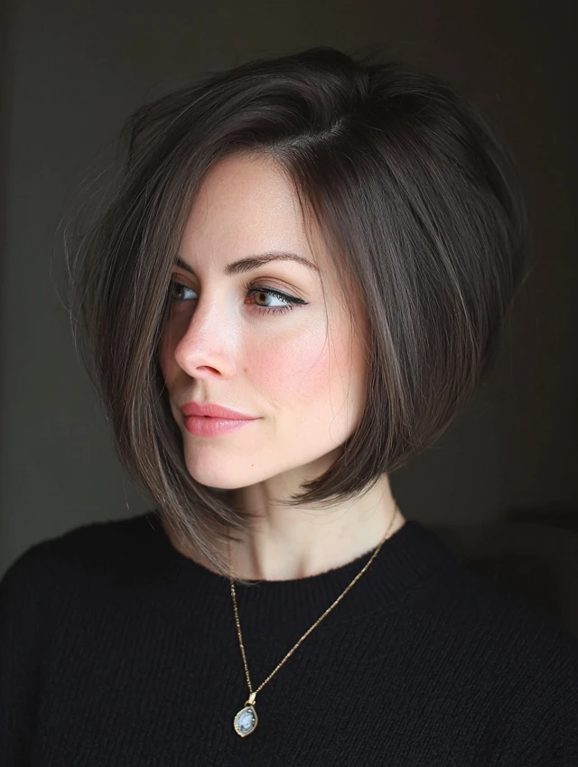 The stacked back adds volume while the bob shape frames the face beautifully.