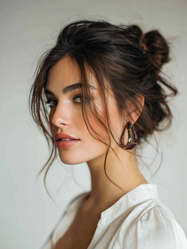 The relaxed bun gives off effortless beauty while keeping your hair stylishly contained.