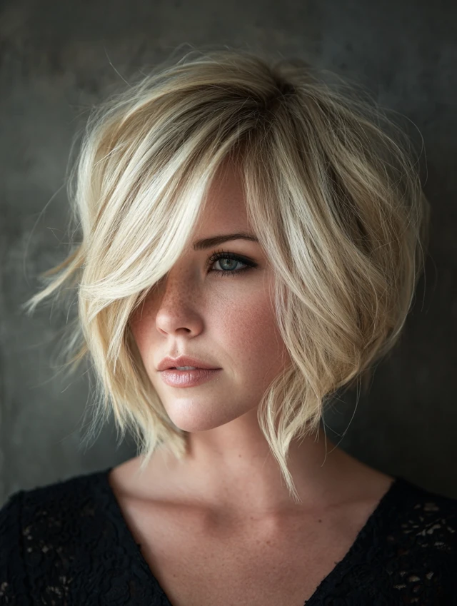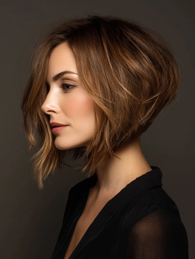 Why It Works: Longer pieces in front draw the eye down and lengthen the face subtly.