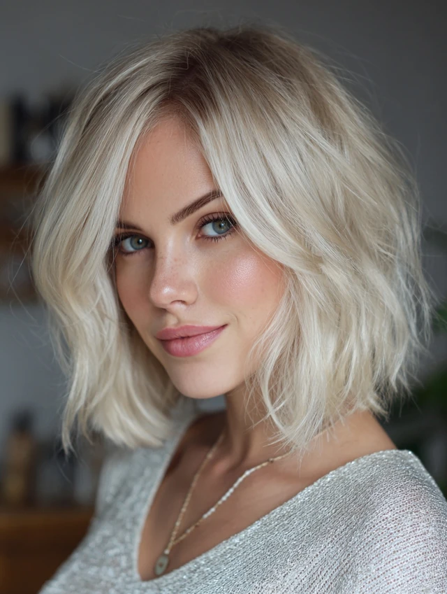 Champagne blonde is soft, luminous, and flattering on many skin tones—elevating a simple bob into something luxe.