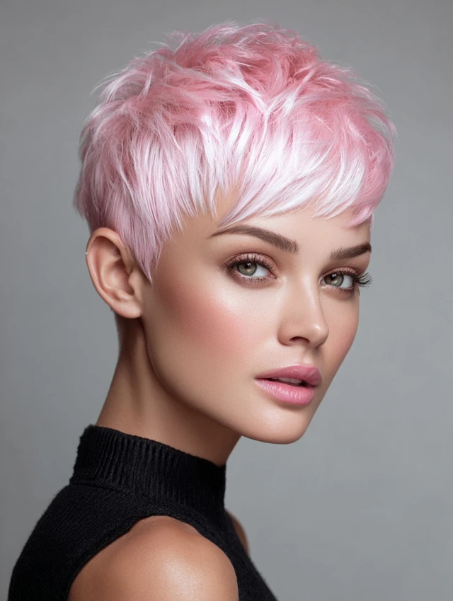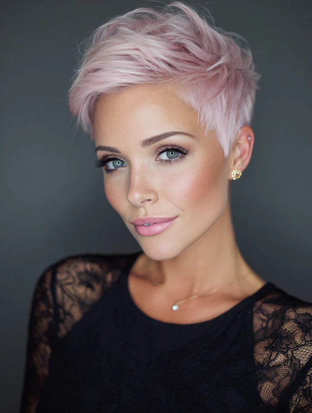 Soft pastel shades add femininity and an unexpected twist to a classic pixie cut.
