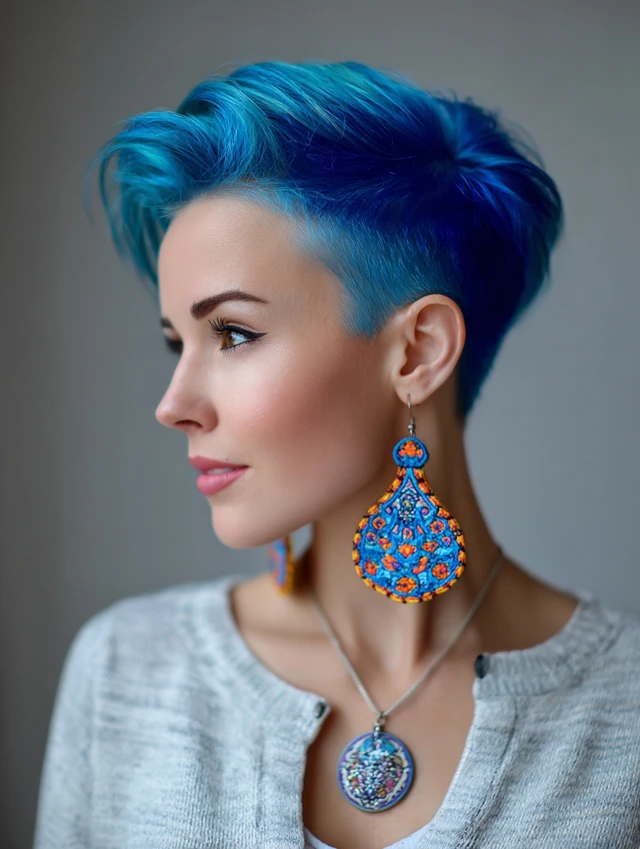 Peekaboo color gives you bold style without the full-head commitment. A vibrant blue undercut adds edge with subtle versatility.