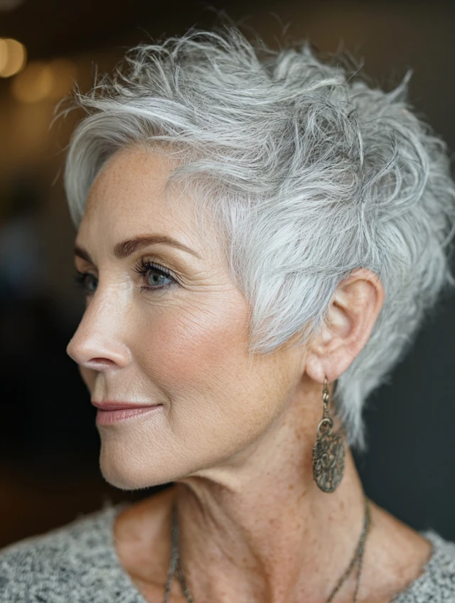 As hair matures, texture, volume, and curl pattern can change. Short cuts help manage density, define curls, and maintain a polished, flattering look.