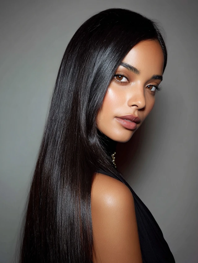 Styling Tip: Keep the crown sleek; let ends stay glossy or wavy.